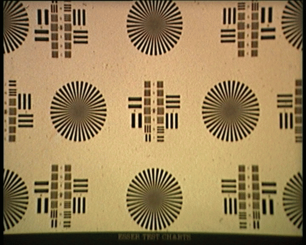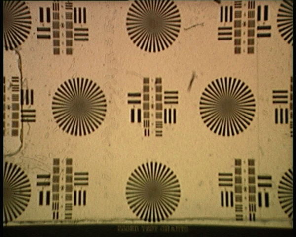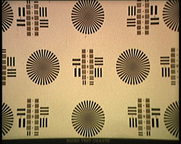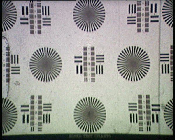 12. Die Ursache dieser Farbveränderung war die Beibehaltung der blauen Kompensationsfarbe am Videomischer nach dem Farbausgleich der "1. rosa Tafel". Das Studieren des genannten* Zeitschriftenartikels erklärt nicht nur die hohe Auflösung des Filmes bei den Testtafeln, sondern auch die optische Verzerrung beim Abfilmen der Tafeln, wenn tatsächlich der Abstand zwischen Kamera und Objekt so kurz war, wie auf beiden Fotos dargestellt.