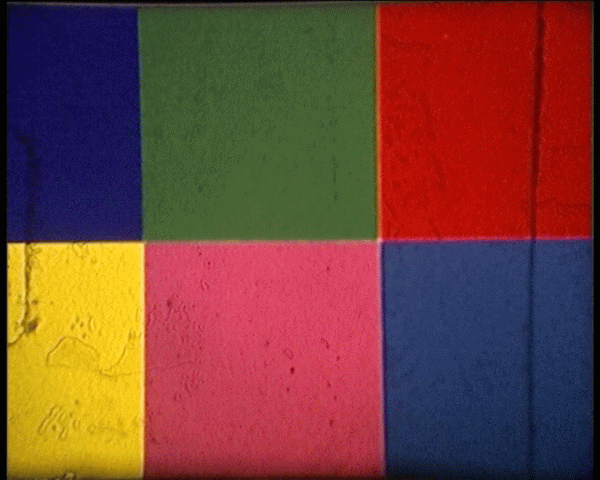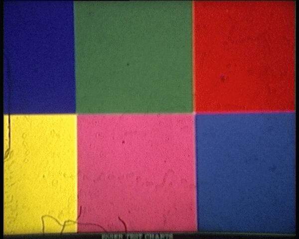 8. Das 8. Filmbild nach dem Passieren dieser Klebestelle zeigt den Bildausschnitt, den MUVIG 2005 für diesen Test lieferte. Erst nach einigen Sekunden wurde dann mit einem Videobearbeitungsgerät im Jahr 2005 die Farbe aus dieser Testtafel für die Überspielung herausgenommen, die das Foto oben links in der Ausgabe 2/2005 der Zeitschrift "schmalfilm" auf Seite 55* in deutlichem Weiß abbildet. Die Tafel war im Original also weiß und nicht rosa. |
