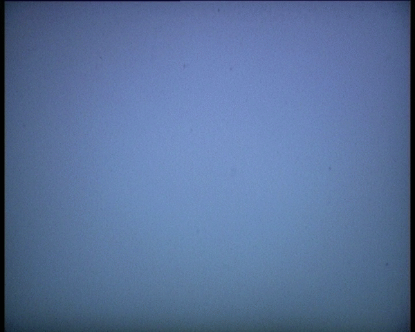 5. Im darauf folgenden Bild ist wieder die Grundfarbe der Aufnahme erreicht worden und es ist der untere Rand des Klebestreifens wieder erkennbar. Die MUVIG - Abtastvorrichtung arbeitet im Einzelbild- Abtastverfahren, was bedeutet, dass von jedem Filmbild im Prinzip 3 Fotos gemacht werden, um daraus wieder 25 Vollbilder herzustellen. Die Hardware, mit der MUVIG das ermöglicht ist ein Betriebsgeheimnis. Bei der Auswertung der Einzelbildfolgen am Computer können nicht immer alle aufeinander folgenden Fotos verwendet werden, da, insbesondere bei Klebestellen und Bewegungsabläufen im Film, Bewegungsunschärfen entstehen. Die Klebestellen für diesen Test wurden mit Klebestreifen ausgeführt, die den seitlichen Filmandruck auf Grund der Materialstärke jedes Mal "aus der Bahn" geworfen hatten und somit den Bildstand für diesen Moment beeinflussten. |