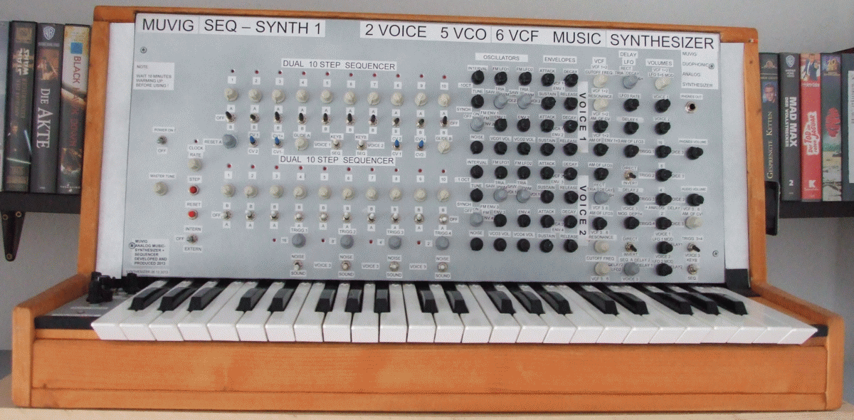 Auch dieser analoge Synthesizer wurde mit einer Staubschutzhaube versehen