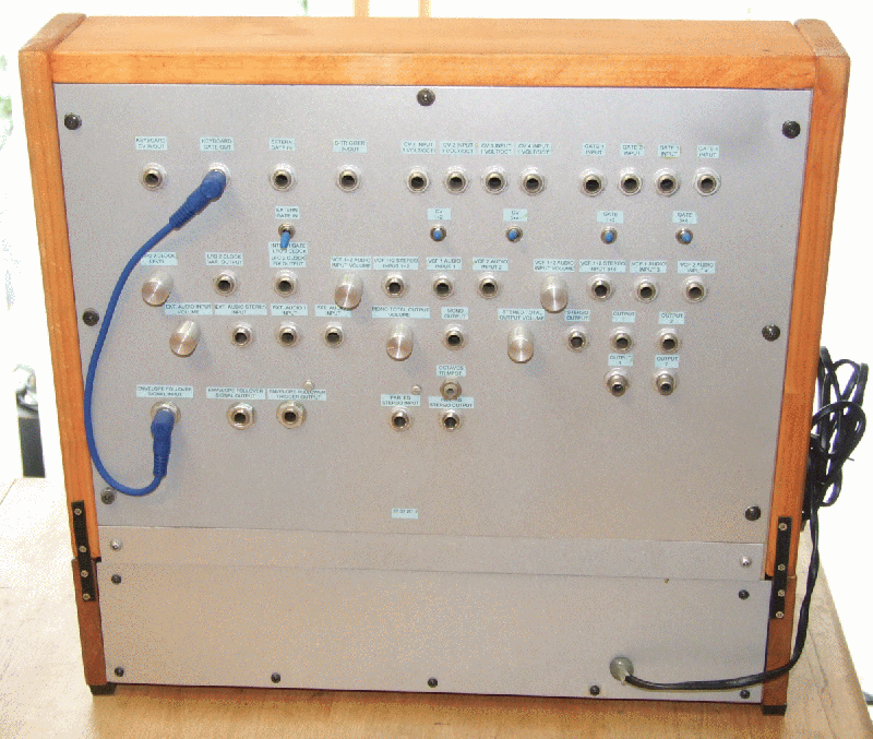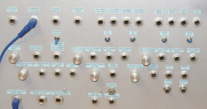 Die Rückseite dieses analogen Instrumentes erinnert an semimodulare Synthesizer