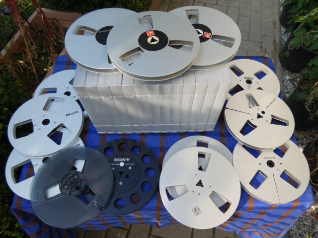 12 x 18 cm Metallspulen und 1 x AKAI Plastik Leerspule für Tonbandgeräte in neuwertigem, gepflegtem und gereinigtem Zustand mit hochwertiger Box für 13 Spulen. Einmaliger Fundus. Einmalige Gelegenheit.