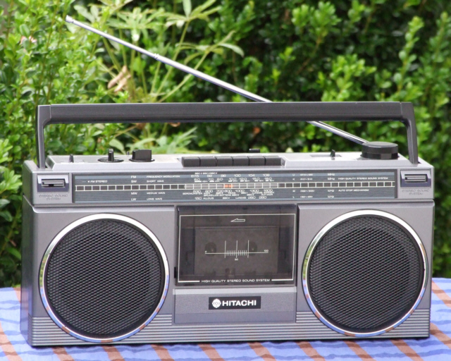 Sensationeller, schwerer Panasonic Ghettoblaster aus den 1980er Jahren in gutem Zustand. Der FM Receiver verfügt über 3 mechanisch voreinstellbare Senderspeicher. Die Kassettentechnik ist Auto Reverse und im linken Kassettendeckel befindet sich ein 5 fach Equalizer. Der Klang ist trotz geringer Bauhöhe sensationell. Der Recorder hat Cynch Eingänge für andere Geräte auf der Rückseite.